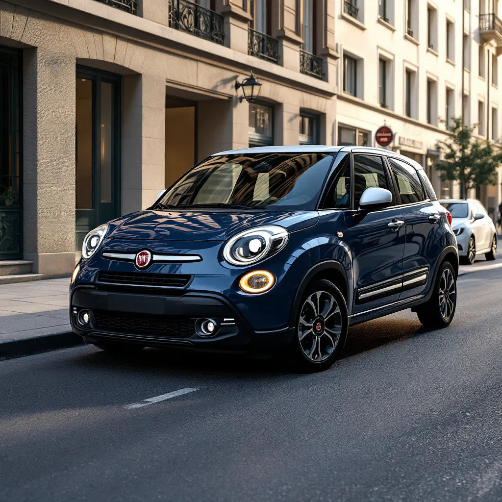 La Fiat 500L se distingue par son design néo-rétro inspiré de la petite 500, mais dans un format plus familial. Avec ses proportions généreuses (4,14 m de long), elle offre un espace intérieur remarquable qui contraste avec son allure extérieure compacte. L'habitacle est lumineux grâce à de grandes surfaces vitrées et un pare-brise panoramique disponible en option.