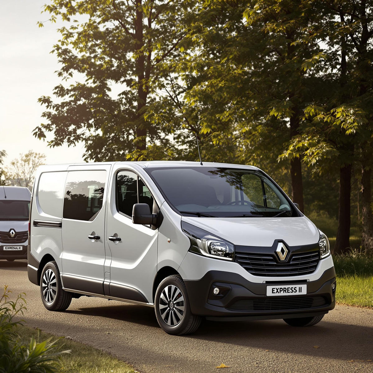 Le Renault Express II adopte un design contemporain qui s'inscrit dans la lignée actuelle des véhicules utilitaires Renault. La face avant arbore la signature lumineuse en forme de C et une calandre qui rappelle l'identité de la marque. Malgré ses origines Dacia, le véhicule bénéficie d'un traitement spécifique qui lui confère une allure professionnelle et robuste.